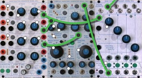 However, and this is a second difference, I tend to see the Buchlidian Paradigm more as a central circle (Complex Waveform Generator) with a constellation of CVs hovering about eager to play.