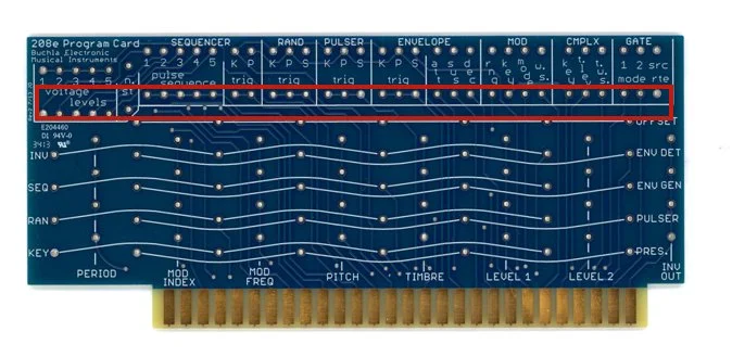 “Along the top portion of the card the inputs appear as the lower of each connection hole…Since conductance values are no more than analogs for control voltages, it is then possible to route any voltage into the input of a connection”